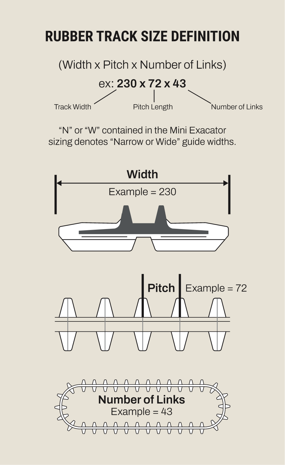 3. Number of Links: This refers to the total number of drive lugs or links around the entire track. Counting these links ensures you get the correct length of track for your equipment. In the example above there are 43 links.